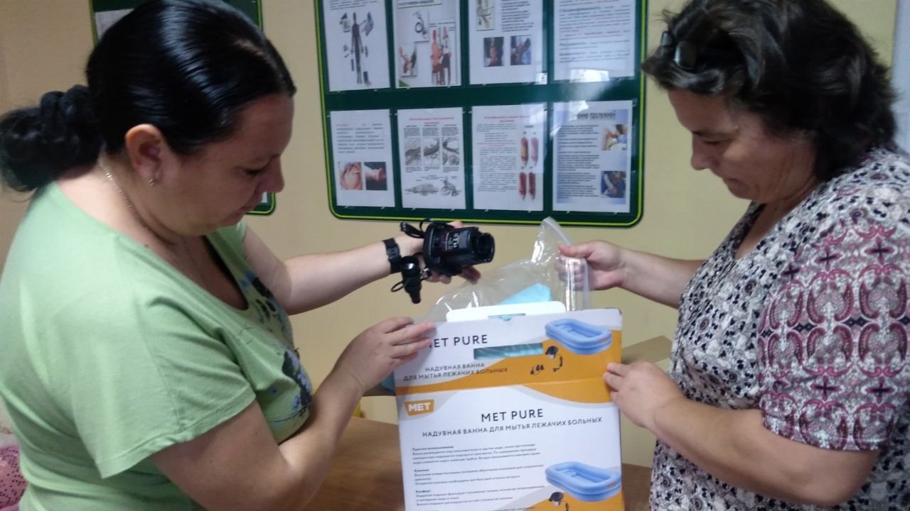 По завершению обучения, в целях ухода, слушателю была выдана во временное пользование надувная ванна для мытья в постели.