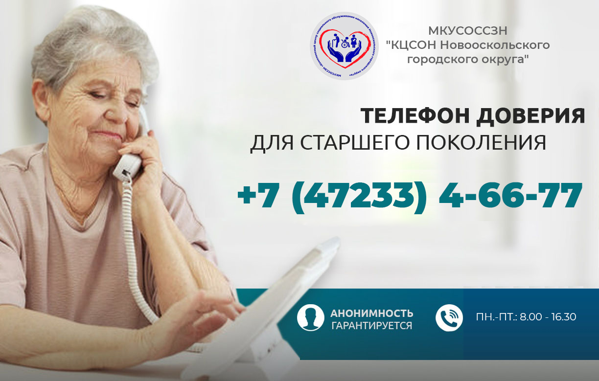 Не стесняйтесь обращаться по любым вопросам, будь то юридические вопросы, финансовые трудности, проблемы с здоровьем или просто желание пообщаться. Наша команда всегда готова помочь вам найти правильное решение и облегчить вашу жизнь. Будьте уверены, что ваш звонок всегда чувствителен, внимательно и терпеливо прослушивается со стороны наших специалистов.Телефон доверия для граждан старшего поколения +7(47233) 4-66-77.